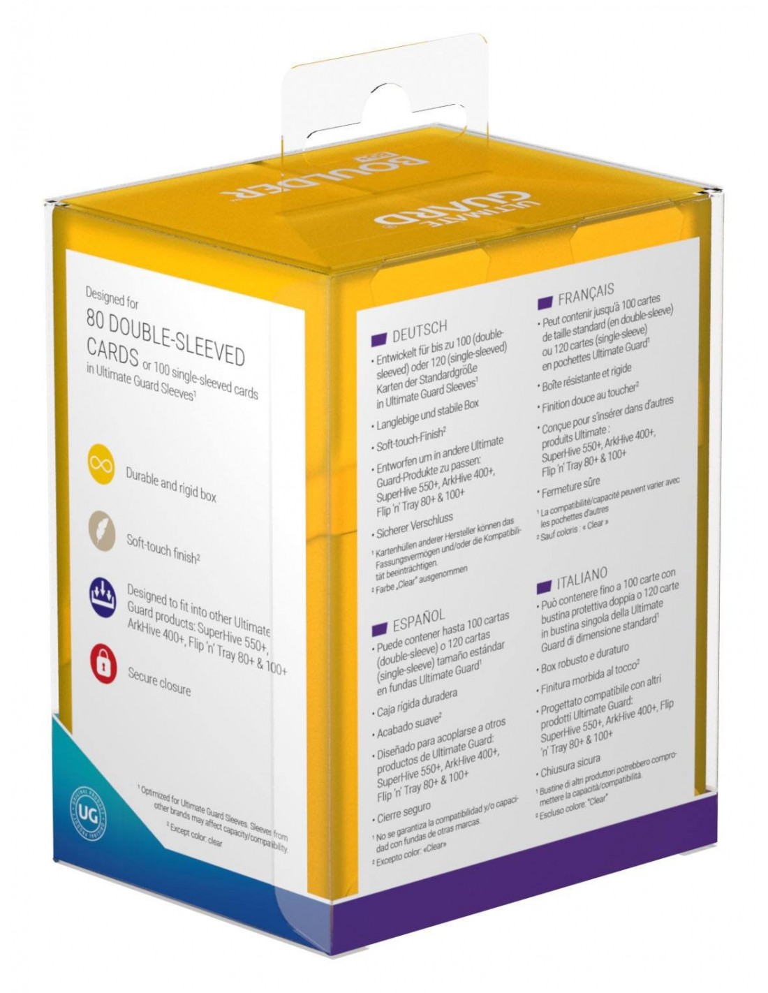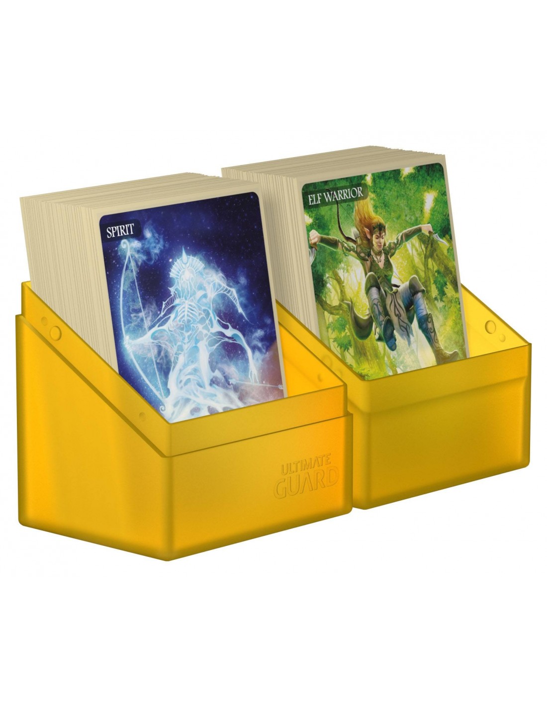 Plastik deck box fra Ultimate Guard i to dele med plads til 80 dobbelt sleevede kort.